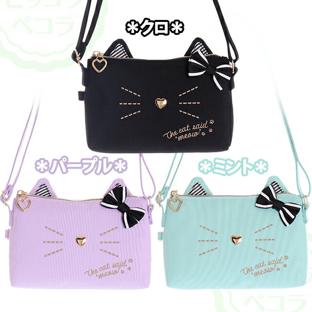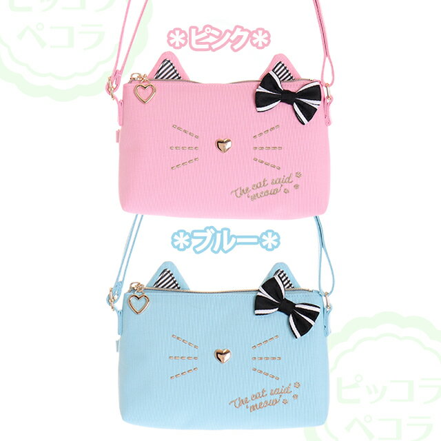 ネコ フェイス リボン付き ポリ ポシェット / 子供用 女の子 バッグ キッズ ジュニア 小学生 幼児 かわいい 【ゆうパケット】