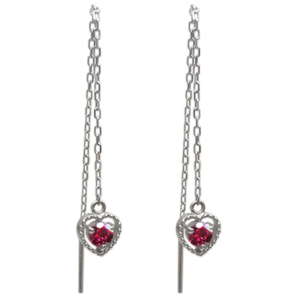 【ポイント5倍】9/11 1:59迄プラチナ ルビーピアス 揺れる ロングピアス ハートピアス