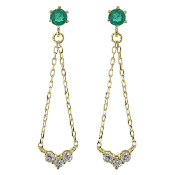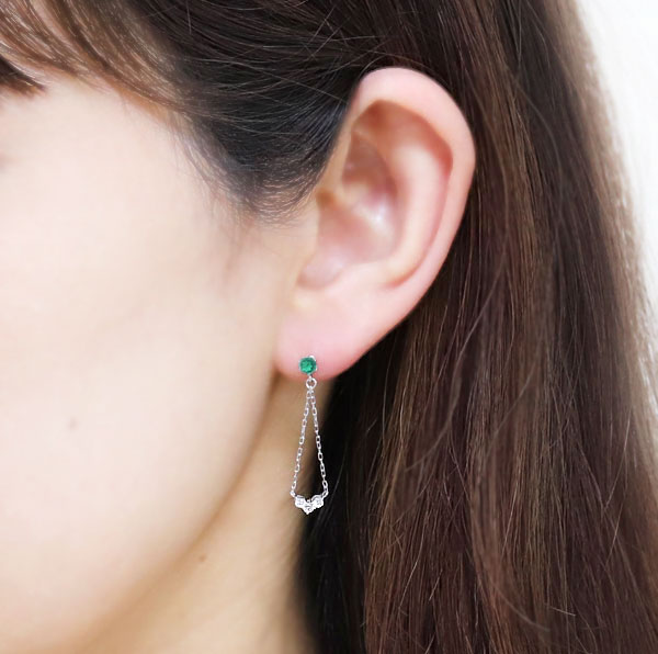 【ポイント5倍】9/11 1:59迄ピアス 5月誕生石 トリロジー スタッドピアス レディース 18金 揺れる