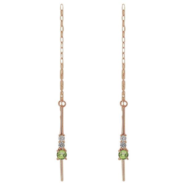 【ポイント5倍】9/11 1:59迄ピアス レディース 揺れる ロングチェーン 天然石 ペリドット シンプル