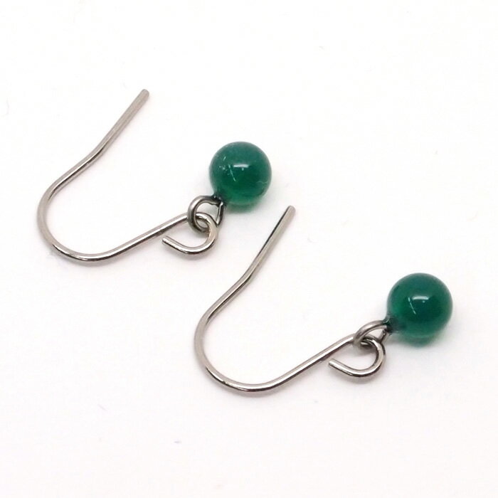 グリーンオニキス フックピアス チタンポスト (丸玉 4mm) 緑メノウ アゲート 揺れる フック ピアス ボールピアス 【レディース アクセサリー シンプル おしゃれ】【1000円ポッキリ】 金属アレルギー 安心 チタン