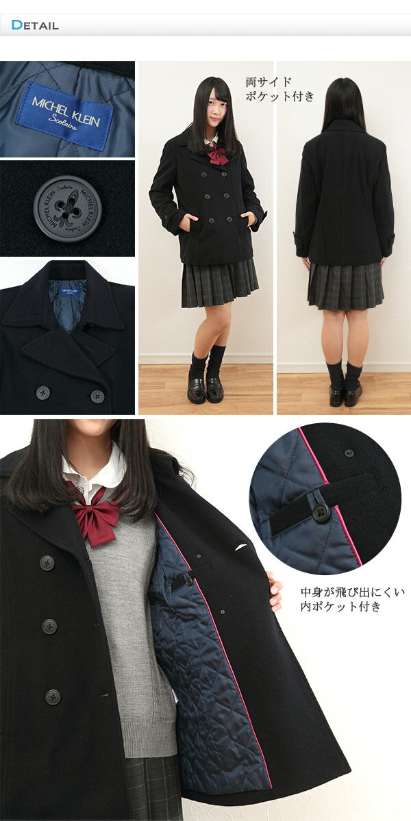 MICHELKLEIN ショート丈ピーコート S〜L (ミッシェルクラン ミシェルクラン 台衿付きピーコート 学生コート スクールコート 通学 通勤 防寒着 防寒対策 冬 カンコー学生服 菅公学生服 中学生 高校生 女子高生) (送料無料)【在庫限り】